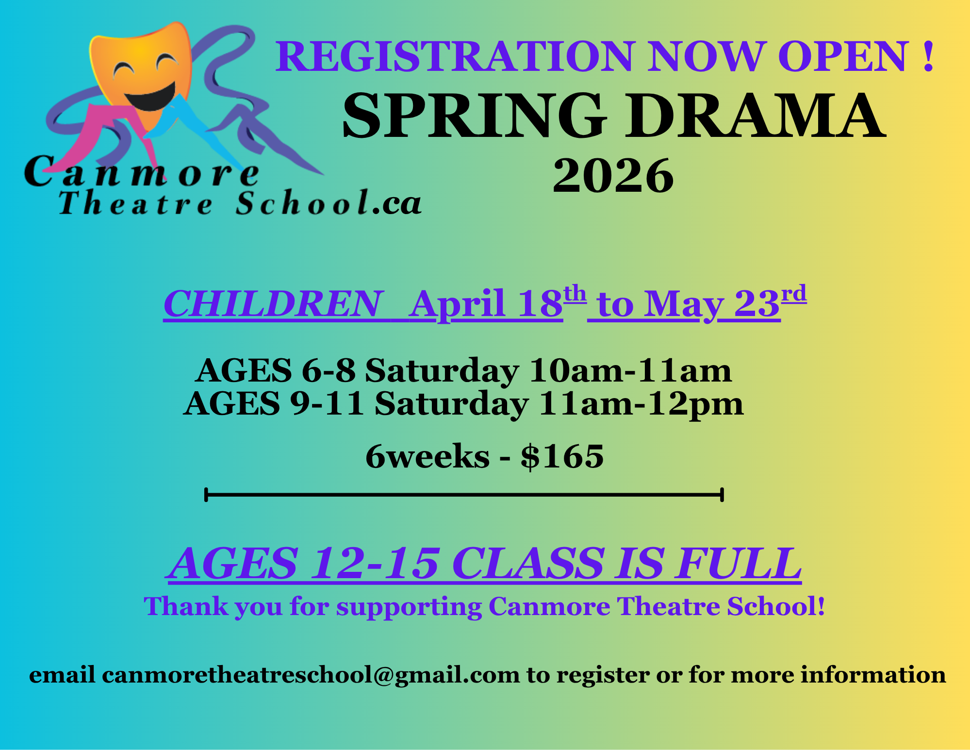 “We are so excited to be filling a need for children, and youth in the Bow Valley. Canmore Theatre School will create a community of performers through learning and imagination. It will be a space to take care of our young thespians and creatives, a safe place to unleash their potential.”